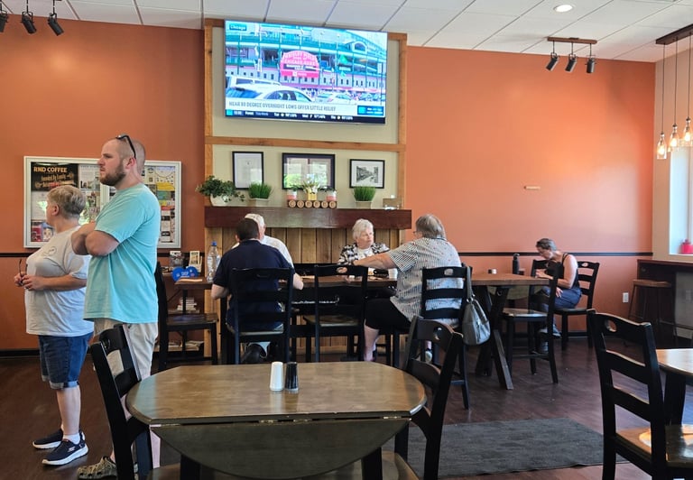 Inside, the café had this small-town charm you can’t fake. The air conditioning was a blessing, but we both agreed: on a cooler day, sitting outside would be perfect…especially with a book, a breeze, and a warm drink in hand.