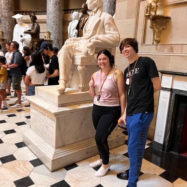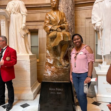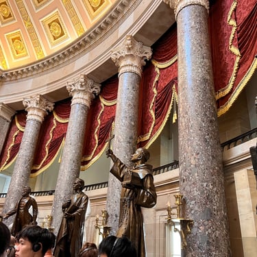 But perhaps the most memorable part of the tour was the Statuary Hall, where history came to life in the form of statues commemorating the great figures of American history. From Rosa Parks to Chief Standing Bear, each statue told a story of courage, resilience, and the enduring spirit of the American people. And of course, we couldn't resist the urge to snap a few selfies with our favorite historical figures β because when in D.C., why not strike a pose with the legends of yesteryear? We even tried whispering across the hall to see if we could hear the echo. The tour guide said this was possible which is one of the reasons the room moved from being the House of Representative Chambers to the Statuary Hall.